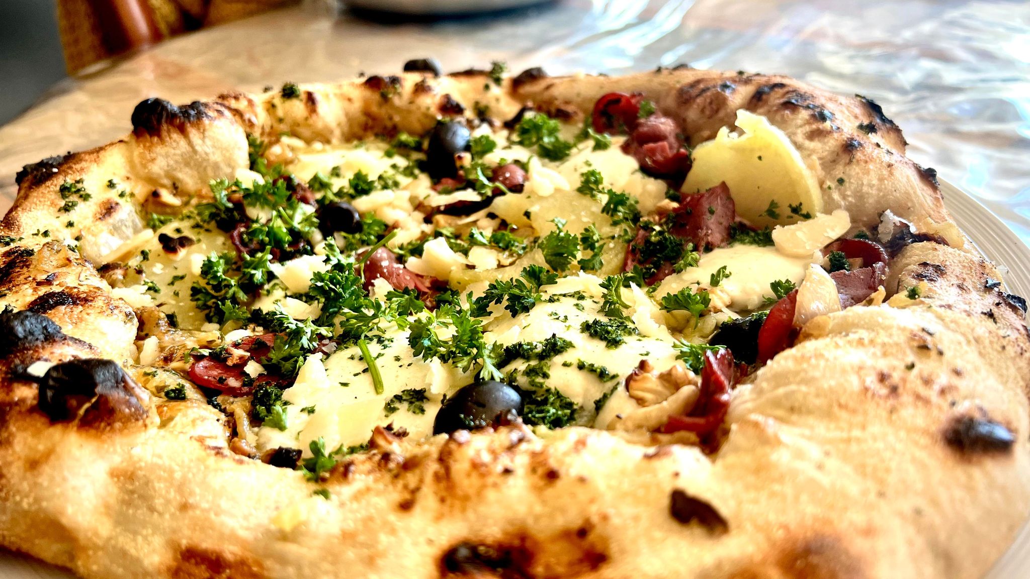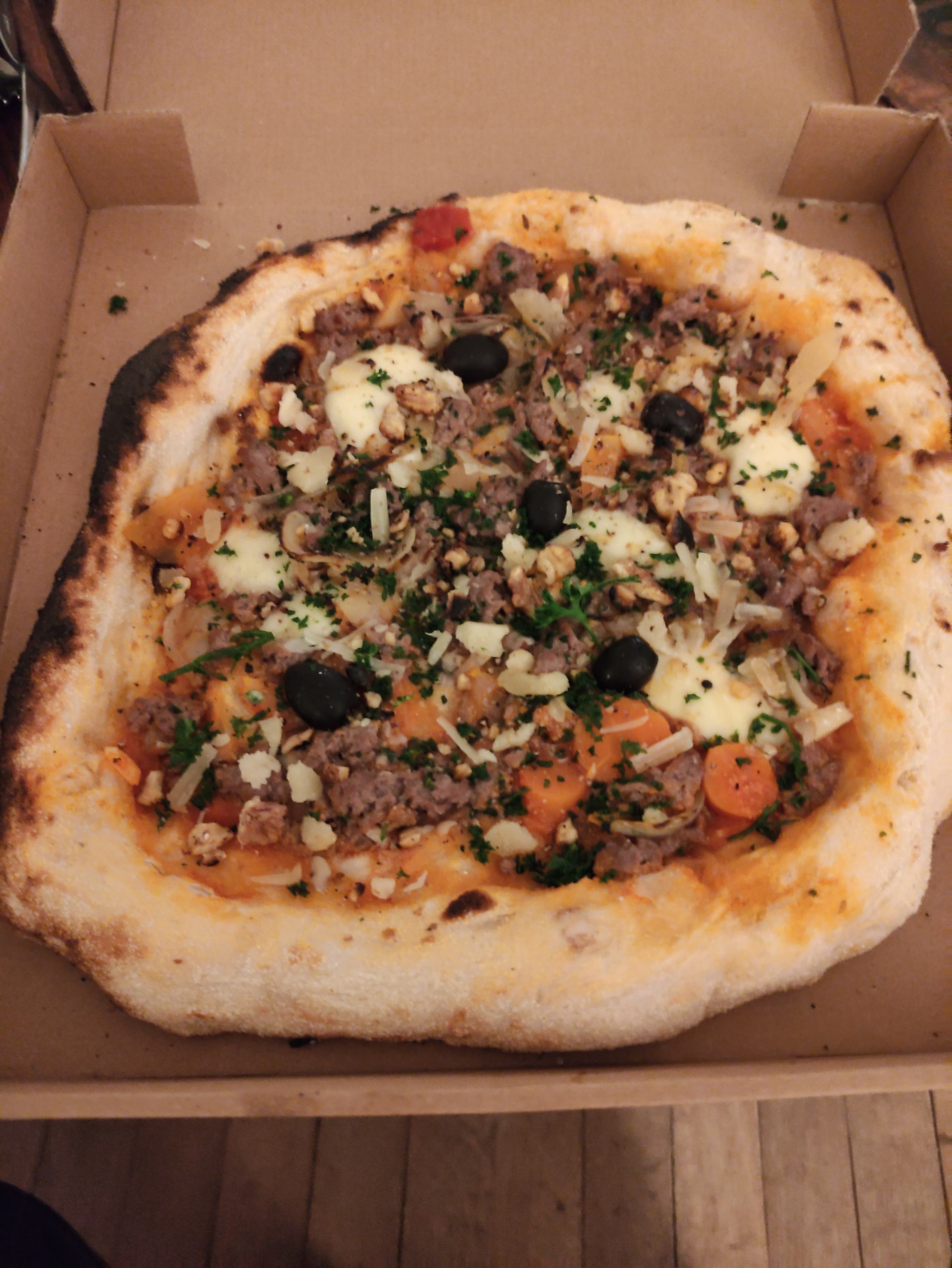 Je n'ai jamais mangé d'aussi bonnes pizzas ! Elles sont excellentes, c'est une véritable dégustation culinaire. La pâte est moelleuse avec une touche croustillante juste comme il faut, les garnitures sont de très bonne qualité, se marient très bien ensemble et ont beaucoup de goût. Quand vous aurez goûté à ces pizzas, vous ne pourrez plus en manger d'autres ! ;)
