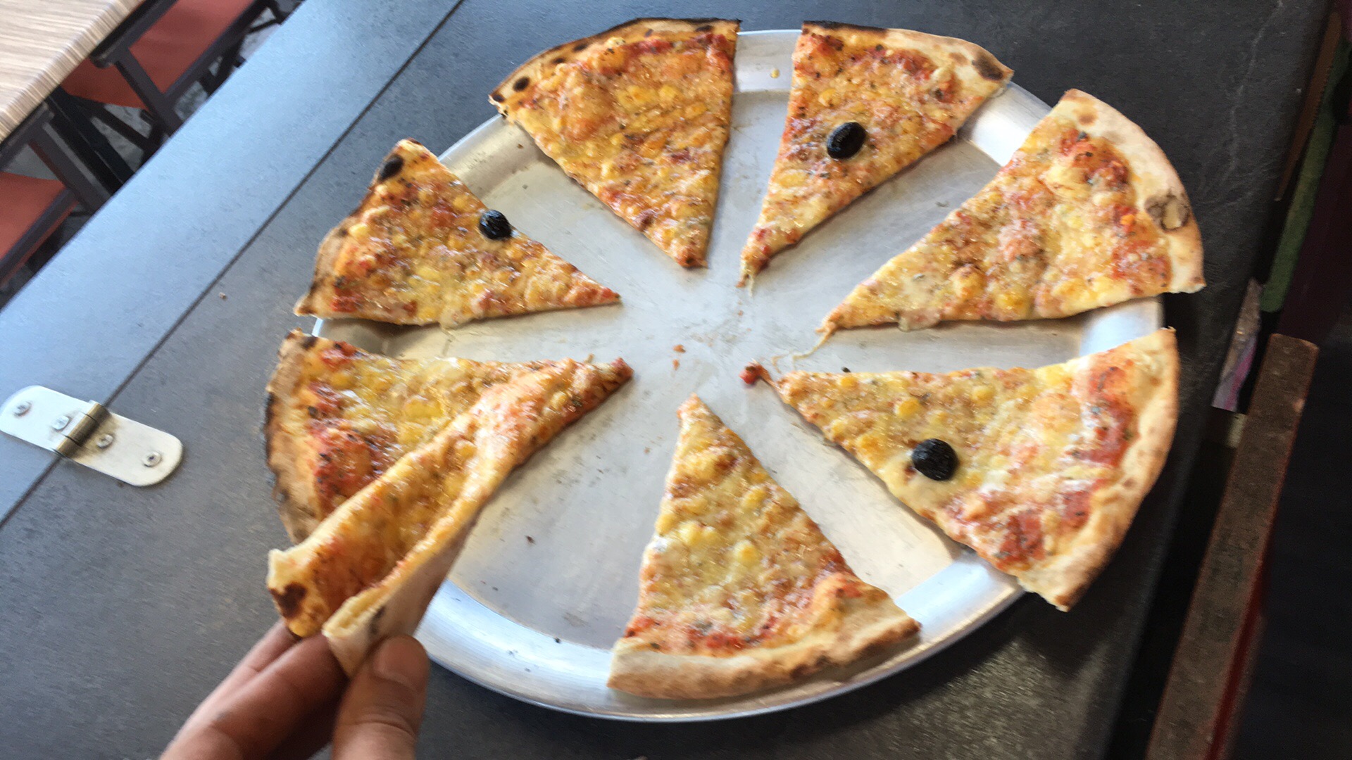 Pizza succulentes ! 1 pizza pour 2 c'est suffisant car énormes !! 4 sortes différentes choisie et surtout bien garnie ! Je recommande !