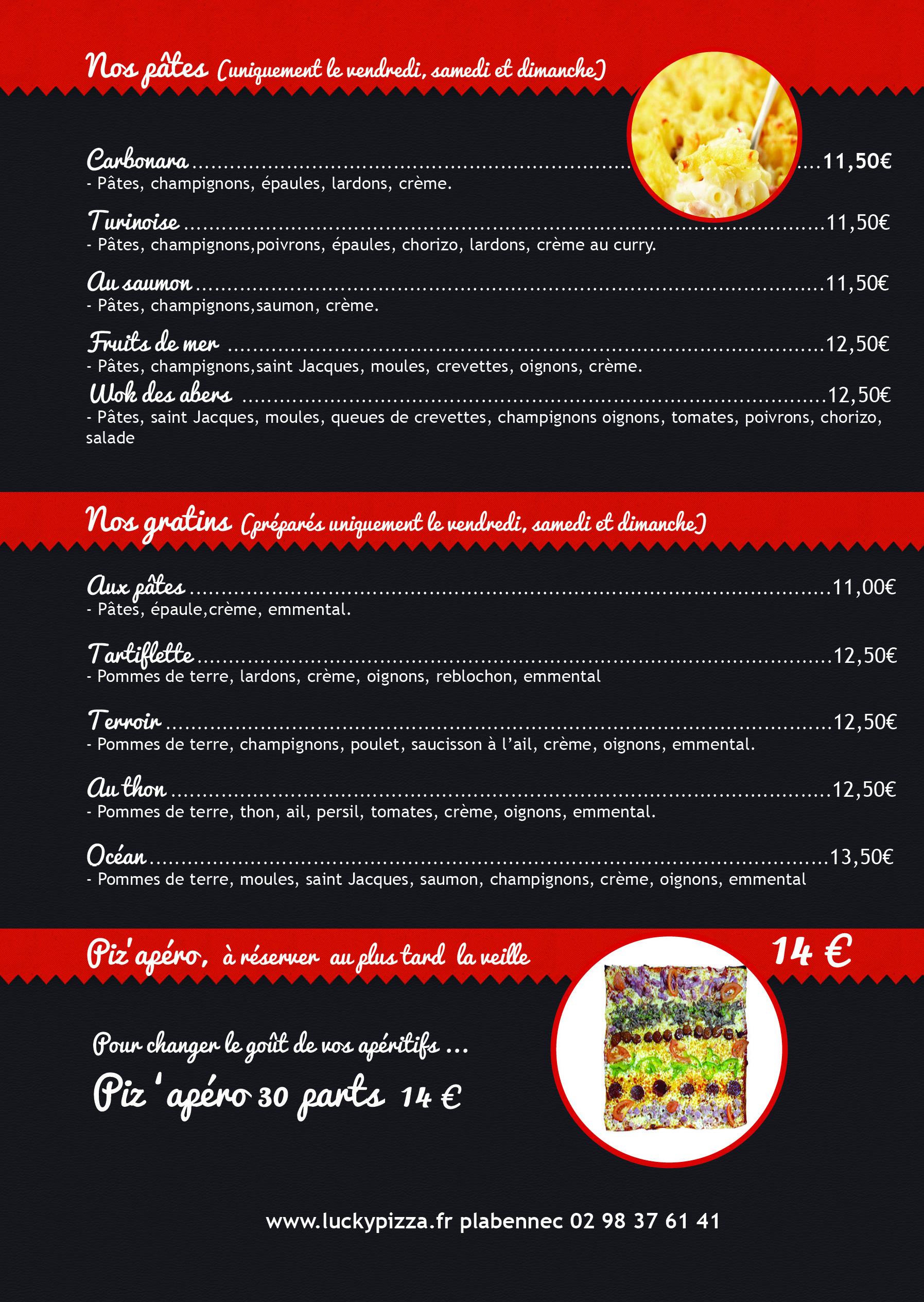 Je venais d' arriver à Plabennec et ma famille avait acheté des pizzas chez Super U. Je suis allé chez Lucky pour leur demander de la sauce piquante que la Patronne m'a gracieusement offert. Du coup 3 fois, je suis retourné leur commander des Pizzas, a chaque fois rapidement servi, toujours avec gentillesse et sourire, les Pizzas sont deliciseuses...