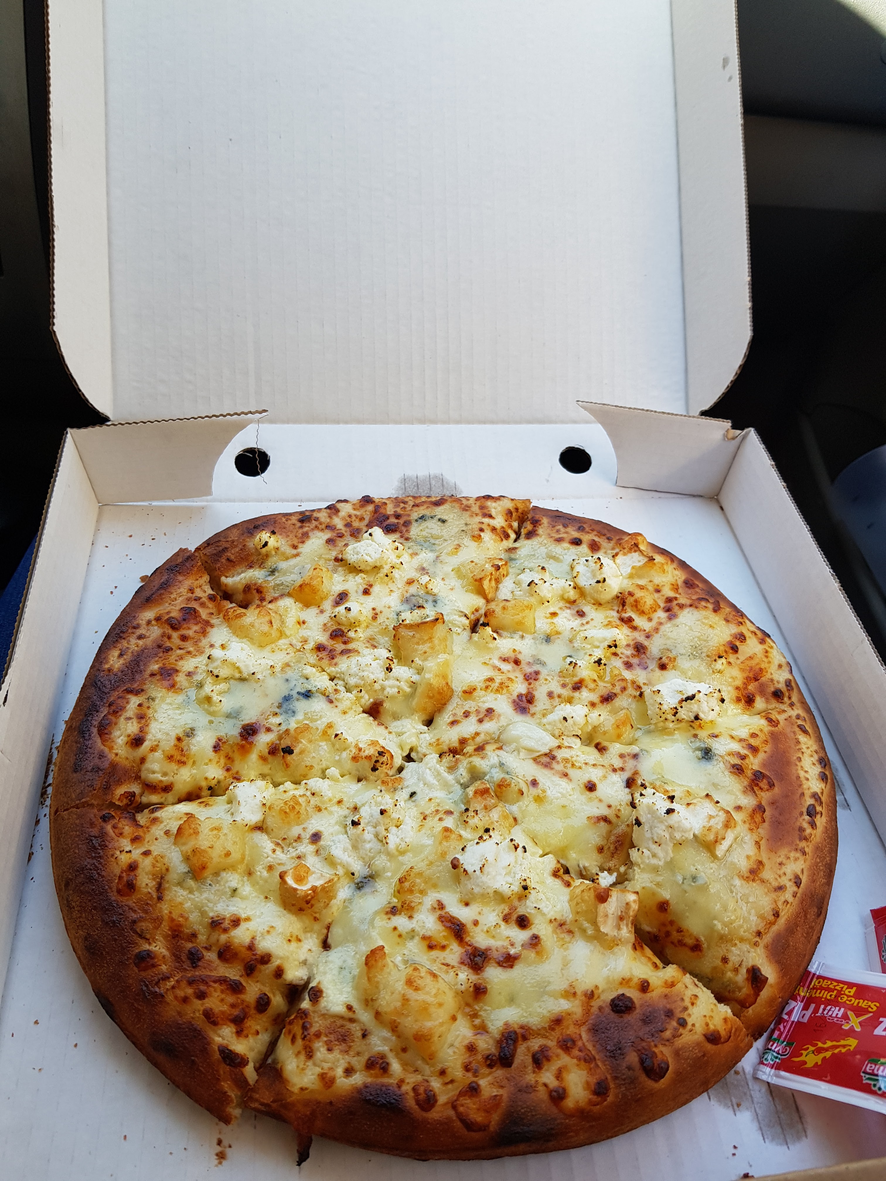 Pâte bonne et heureusement car pas beaucoup de garnitures limite inexistante ! J'ai commandée une 4 fromages 14,90 € et j'ai mangé de la pâte à la sauce tomate. De plus il manquait un fromage sur ma pizza alors que j'avais précisé que celui là j'en voulais généreusement. C'est dommage car la pâte est bonne, il manque plus qu'une bonne garniture et elles seront bien