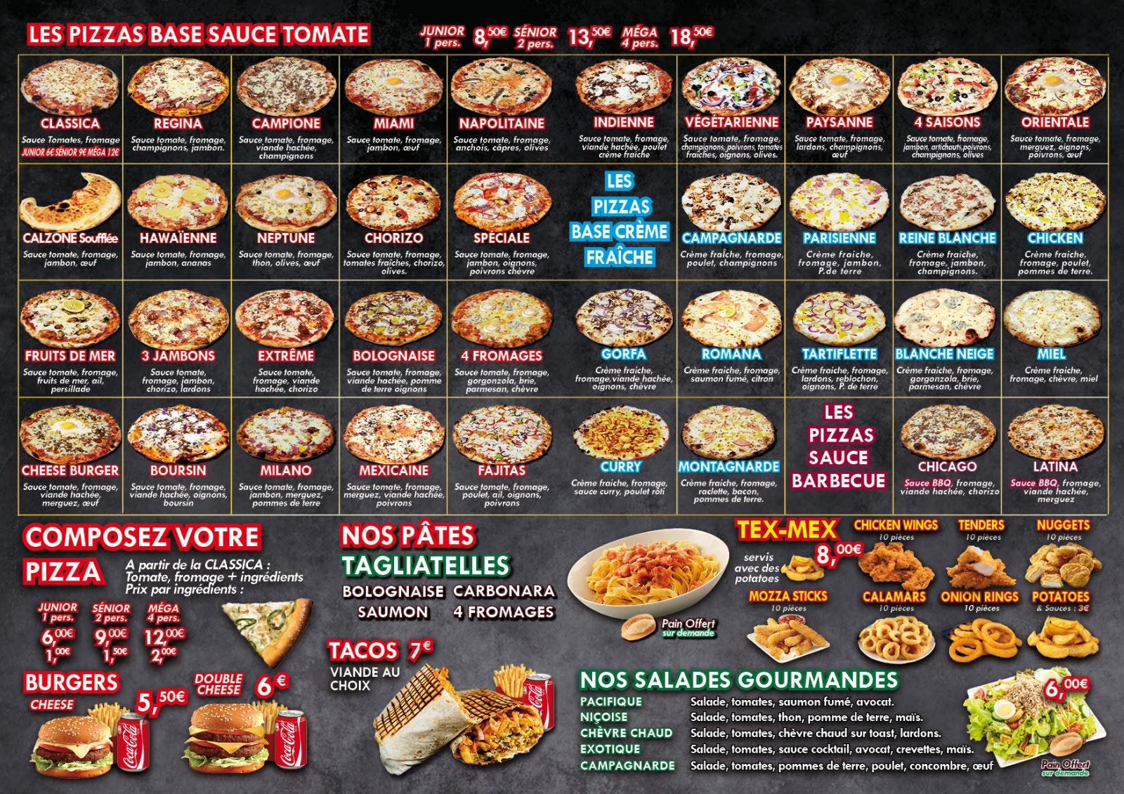 Burger et pizza excellente mais sur le dépliant manque la prix des tagliatelles