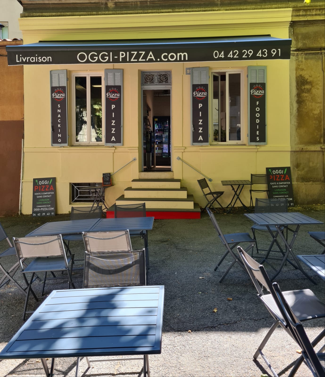 Si vous voulez déguster de merveilleuses pizzas, garnies de produits de haute qualité, je vous recommande OGGI PIZZA!!! Vous ne pourrez pas être déçu ! Dégustation sur place possible, à l'intérieur ou en terrasse, ils ont même un super écran et diffusent les meilleurs matchs ! Vous rencontrerez une équipe très accueillante a l'écoute de ses clients. Le petit + : La terrasse est agréable le midi car ombragée, parfait pour déguster leurs bons sandwich ou leurs salades faites maison evidemment. Merci OGGI et a bientôt !
