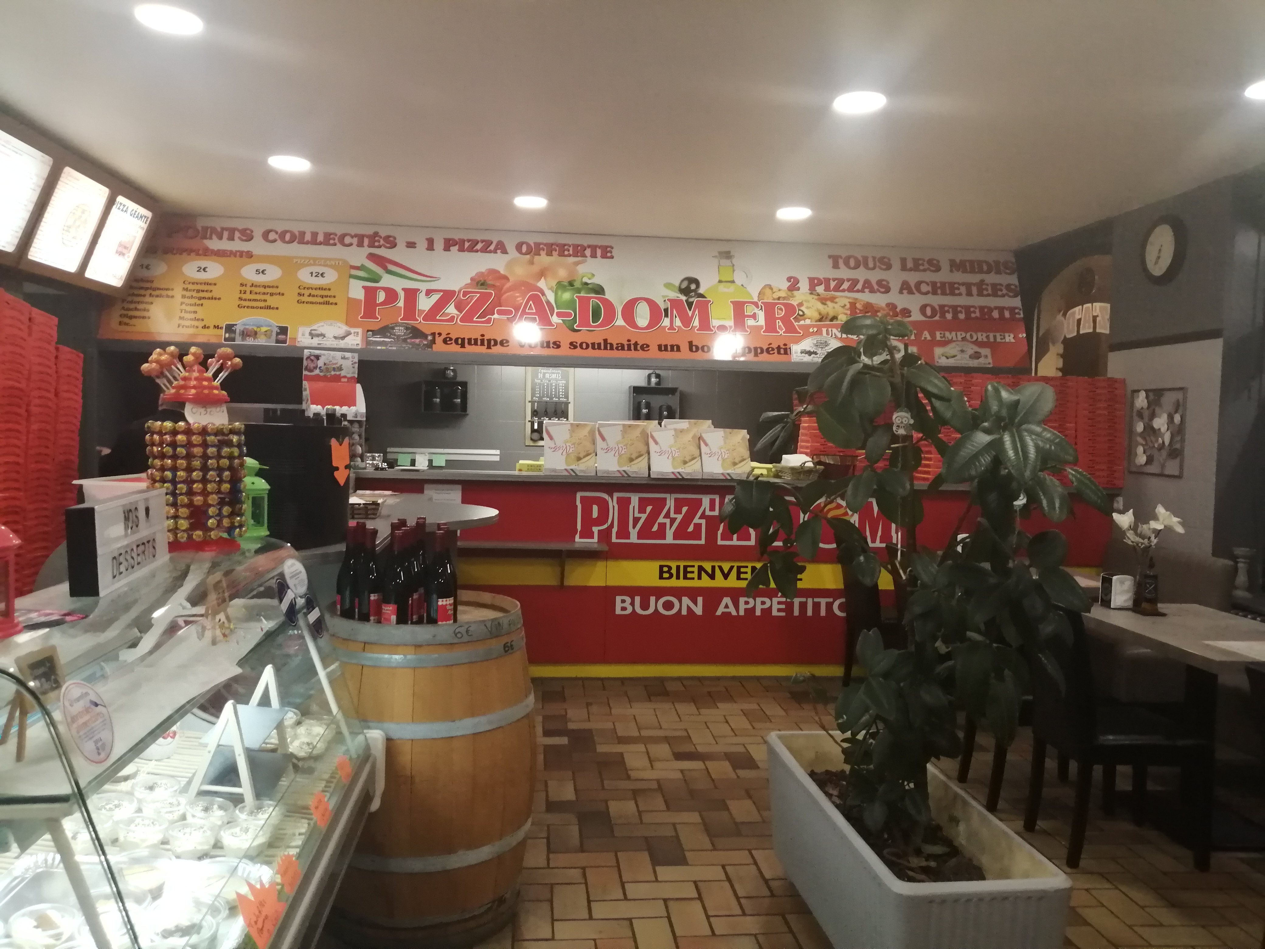 Un large choix de pizzas, de boissons... Y a des salades, des pâtes, du vin, des desserts pour peu cher ! Y a même un menu enfant ! Sans compter la formule 3 pizzas achetées = 1 bouteille de rouge ou rosé ou 3 sodas 33cl