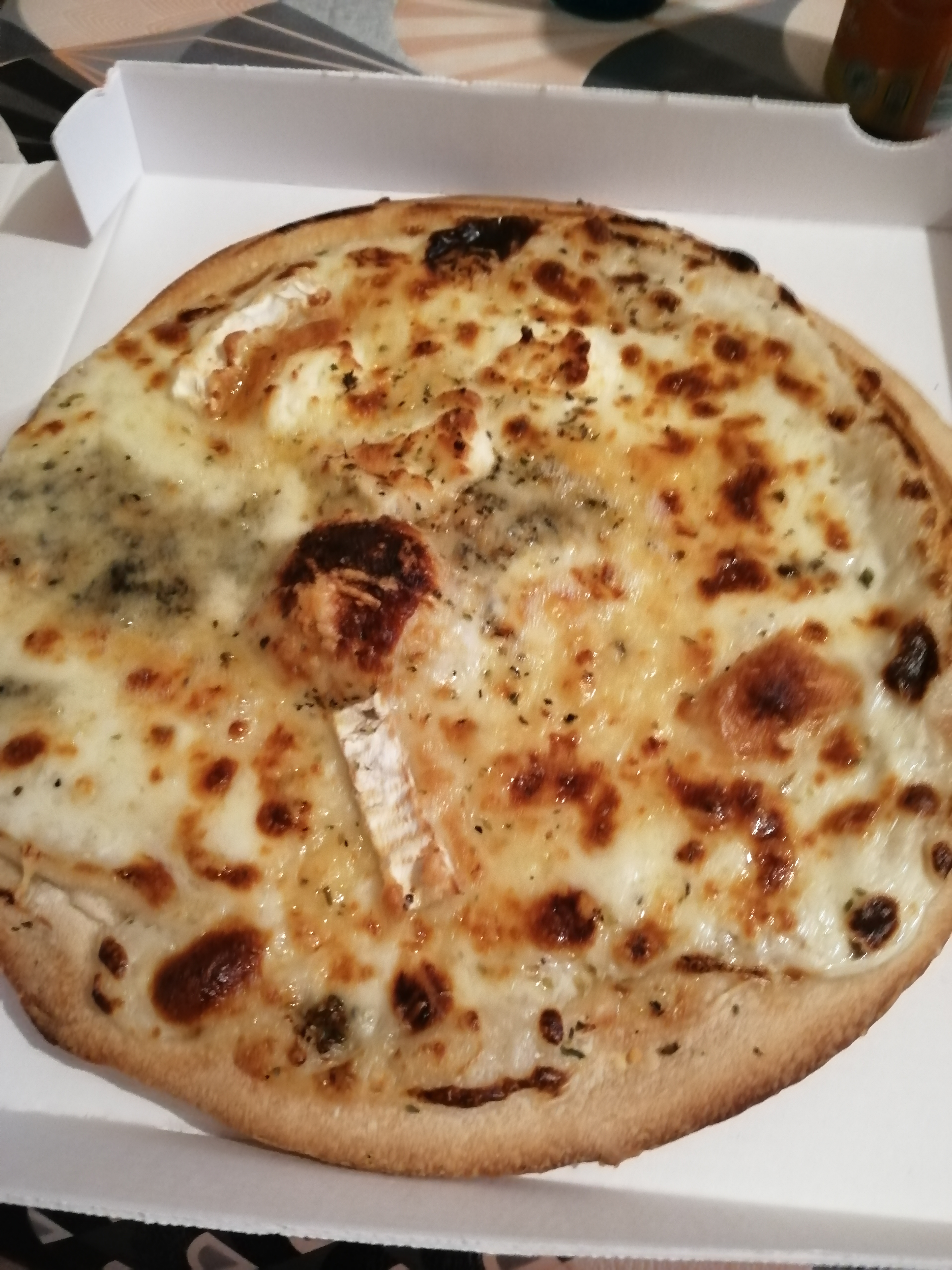Pizza très décevante les pizzas sont pas coupé pizza chèvre miel avec des énormes tranches de tomate sur une base crème …du jamais vue ! Crème inexistante pas de goût plus jamais !