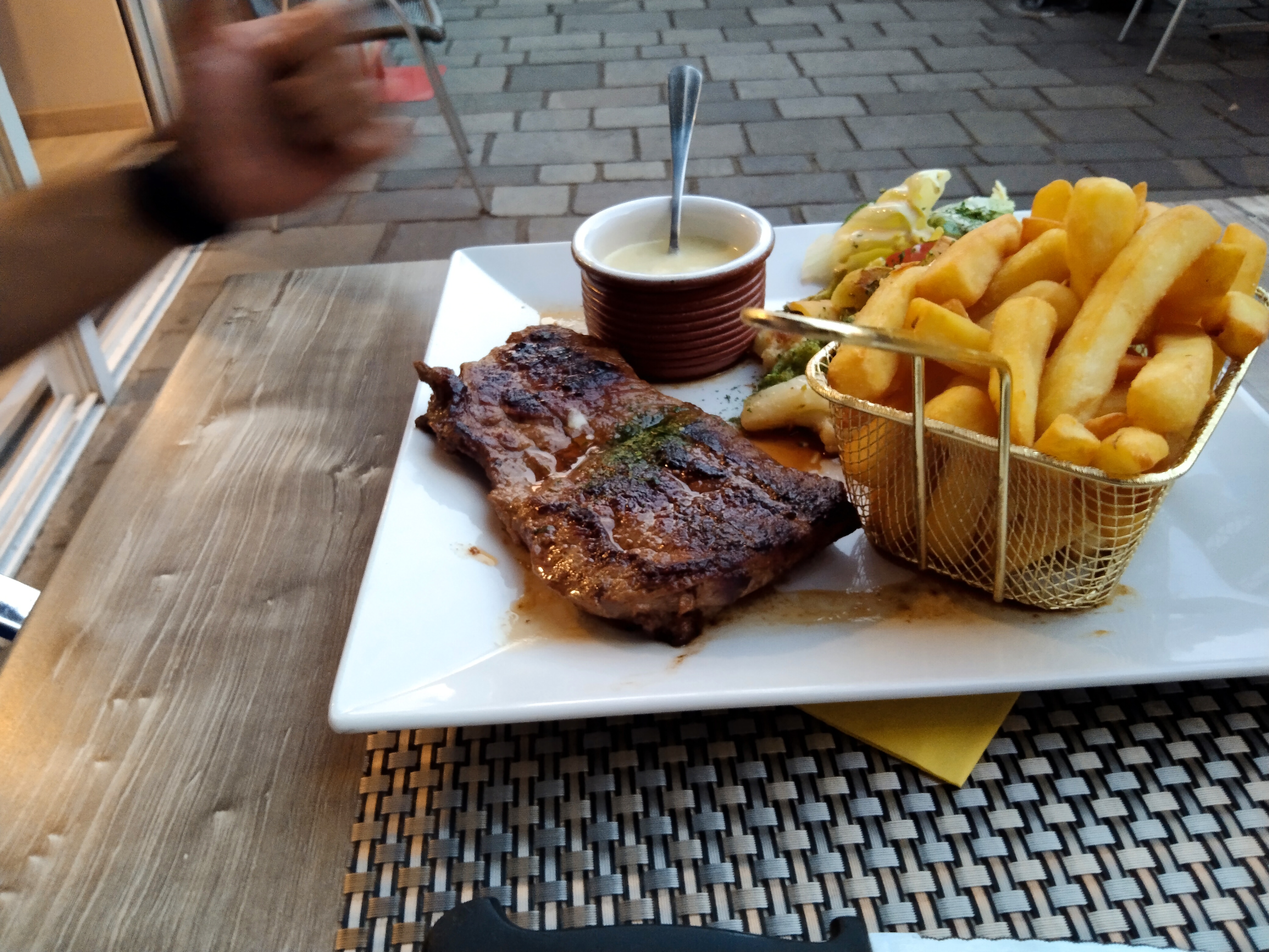 Accueillis avec le sourire pour déjeuner même après 14h bien sonnées. C'est de plus en plus rare! Cuisine simple mais appétissante et goûtue. Assiettes copieuses et service conviviale. Donc, idéal pour un repas avant une balade en ville!