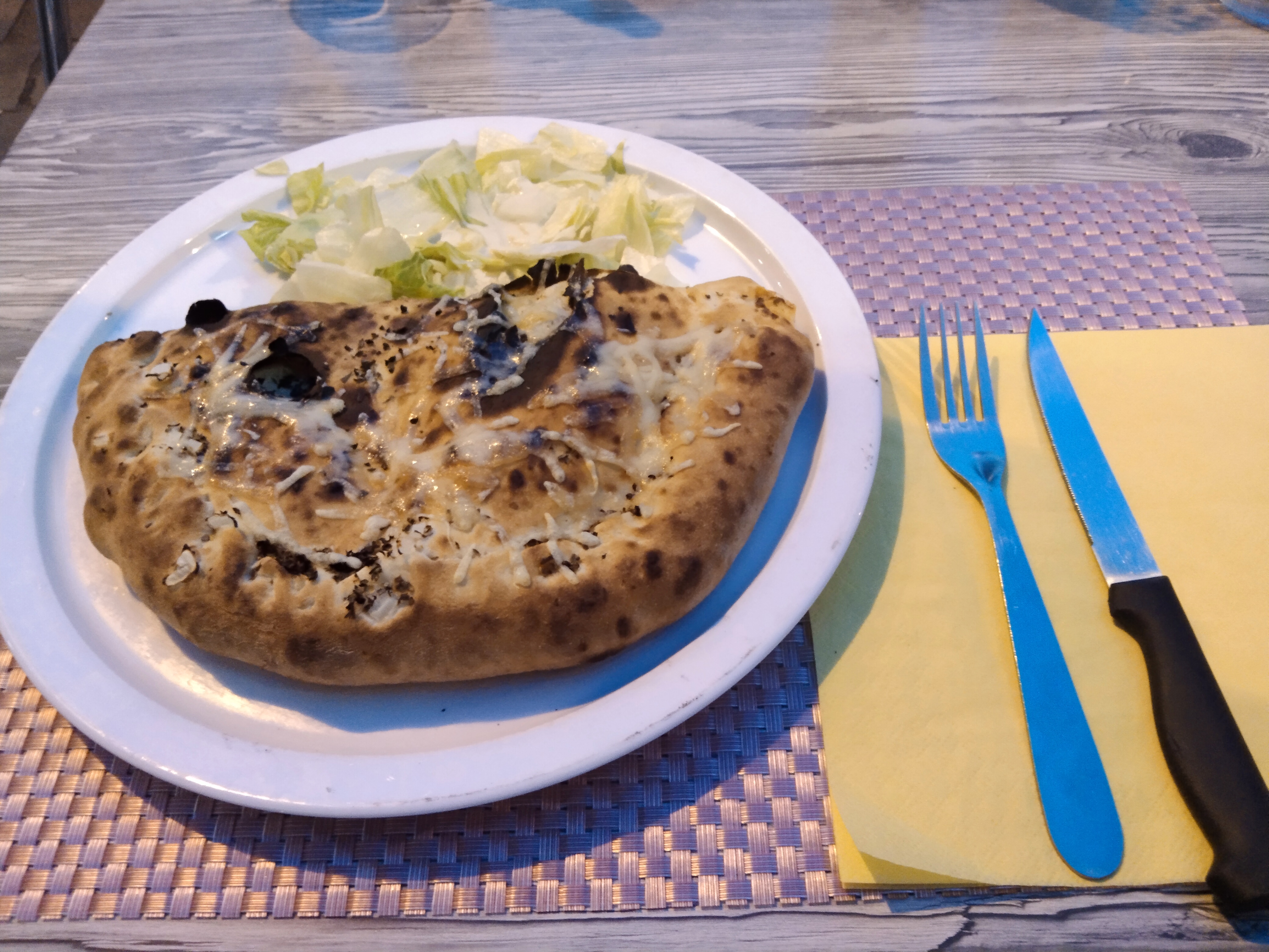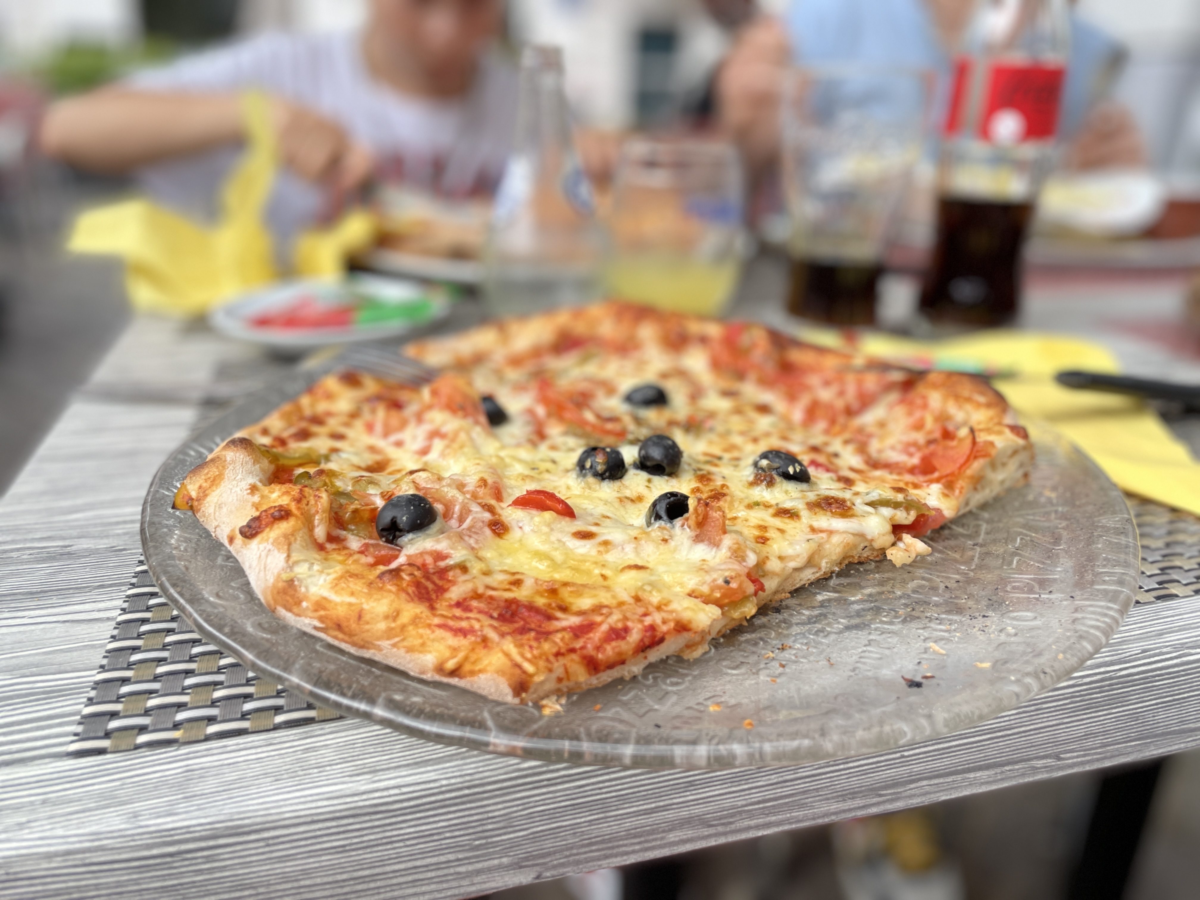 Déjeuner après 3h30 de route. Seul restaurant ouvert aujourd'hui pour cause de jour férié. Le propriétaire a admis qu'il était submergé par le nombre d'invités affluant en même temps. Service un peu chaotique et très lent - one man show pour la plupart. La pizza était correcte mais ressemblait plus à un pain plat (portion donc énorme). Les pâtes au pesto étaient interdites (sauce crémeuse aromatisée au pesto) car ma fille s'attendait à un pesto classique et végétalien. Heureux de recevoir n'importe quoi, mais probablement une fois dans sa vie. Le propriétaire était cependant très gentil.