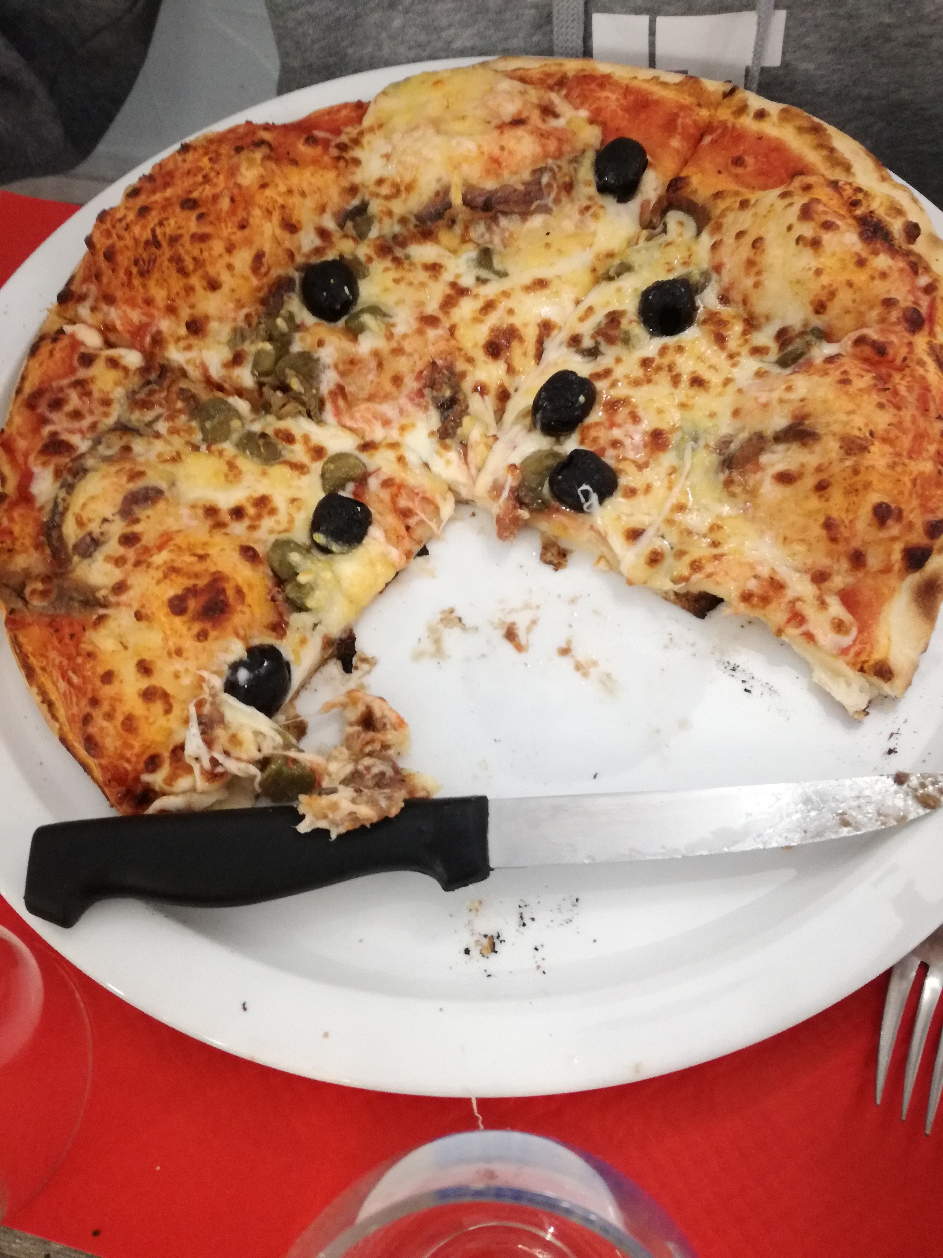 Bien, bonne pizza. 7 euros la bouteille d'eau, l'inflation fait rage.
