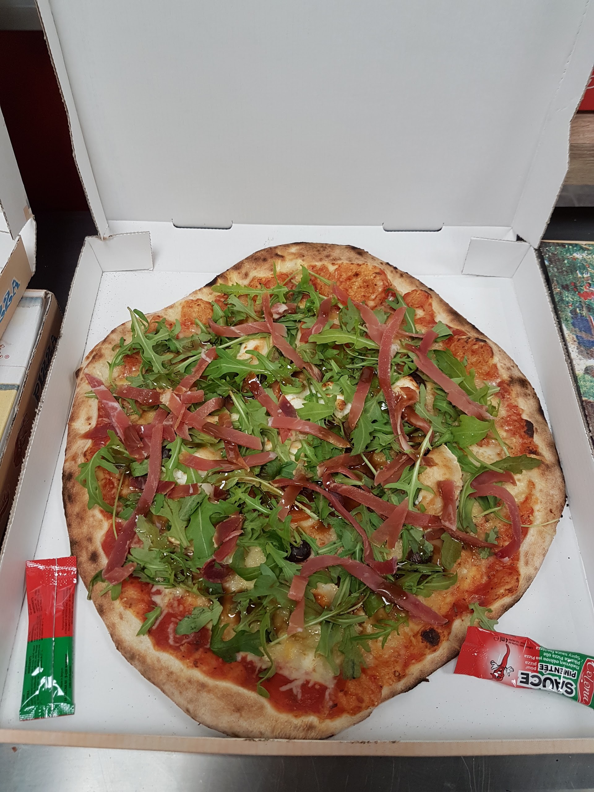 Très bonne pizza pâtes fines produit frais je recommande