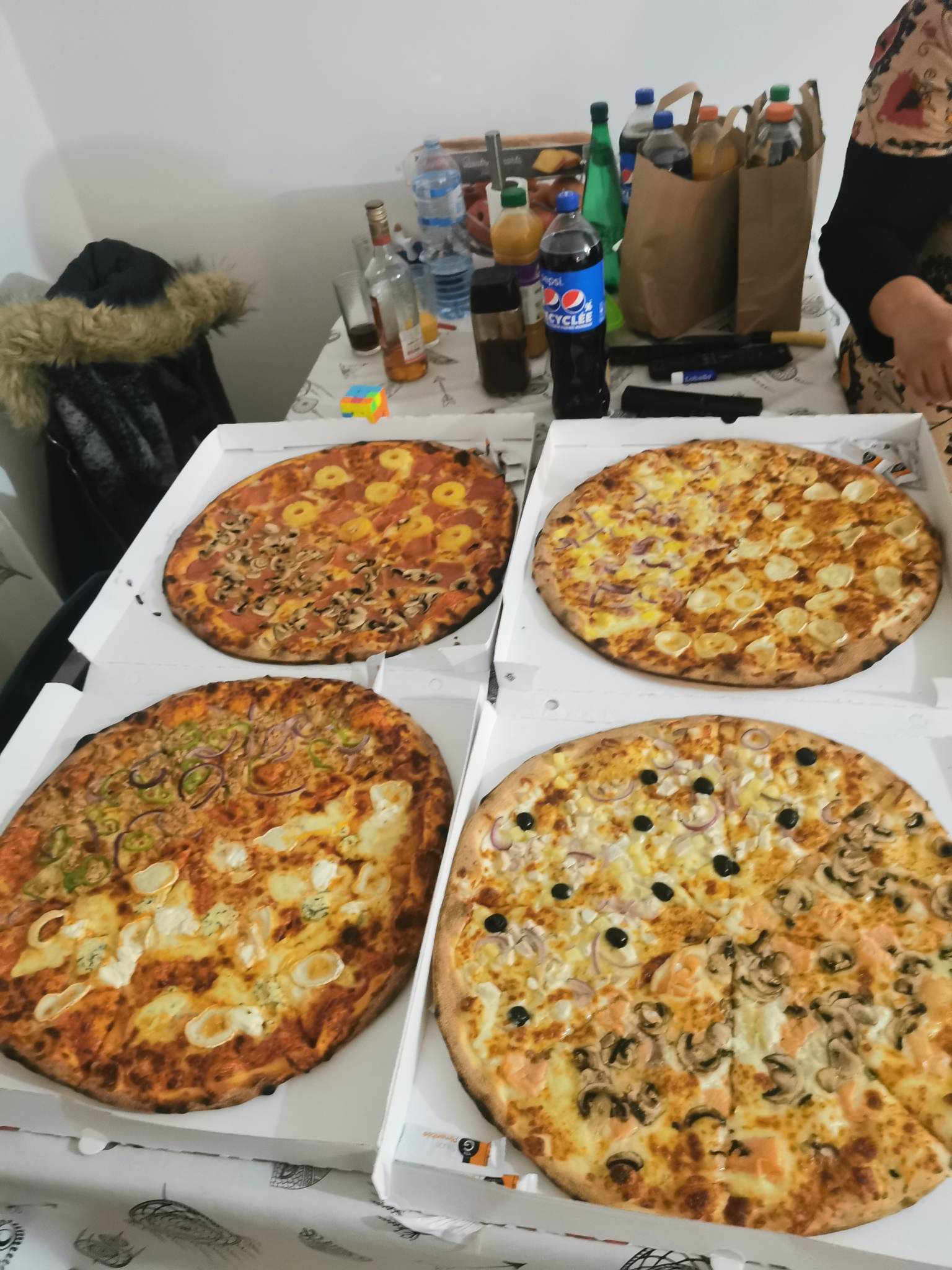 J’ai commander 2 pizzas + 1 grande bouteille, livraison rapide, livreur sympa. Tout est parfait et les pizzas sont très bonnes