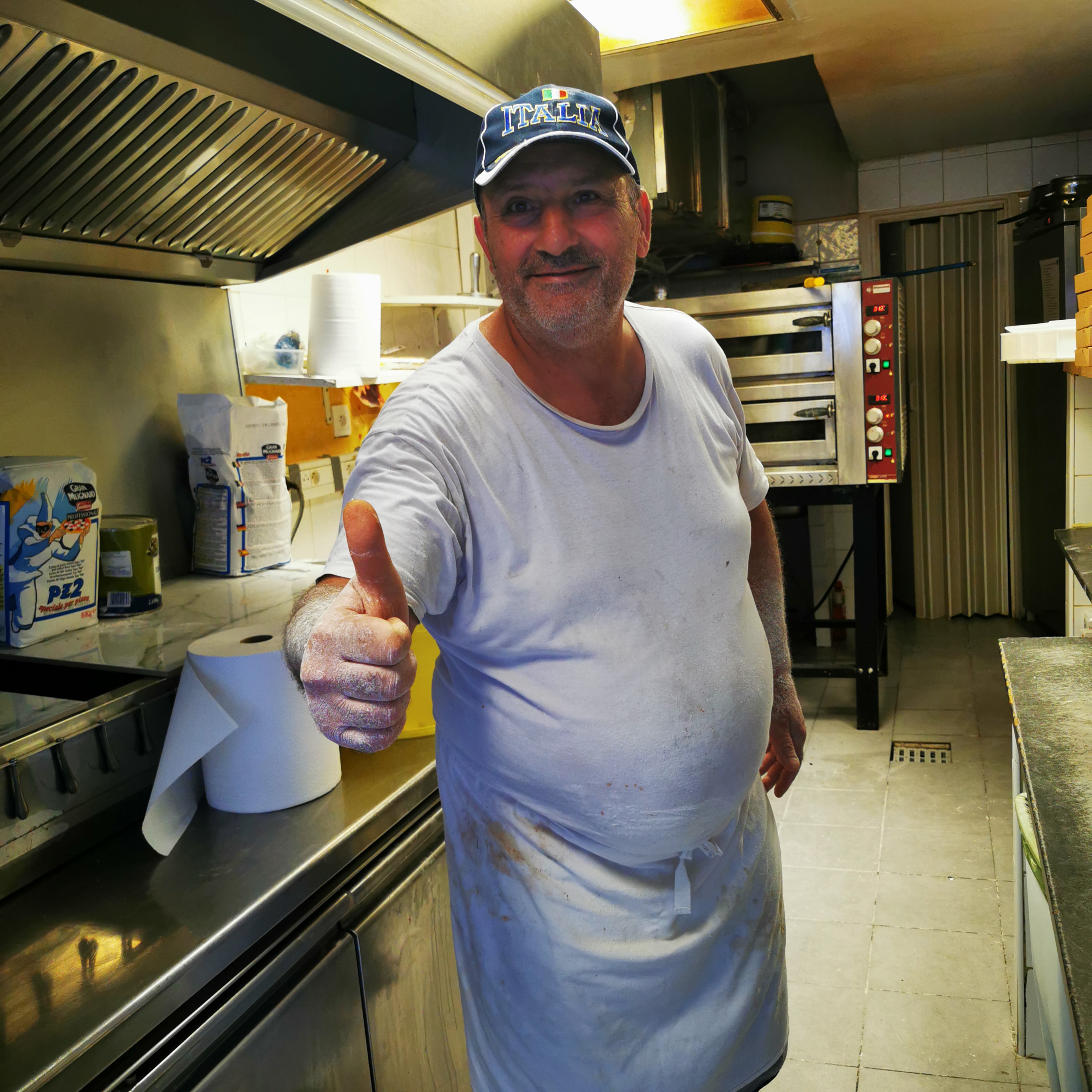 Pizzas très bonnes et généreuses, propriétaires se plient en 4 pour vous satisfaire, multo sympatico 👍😁