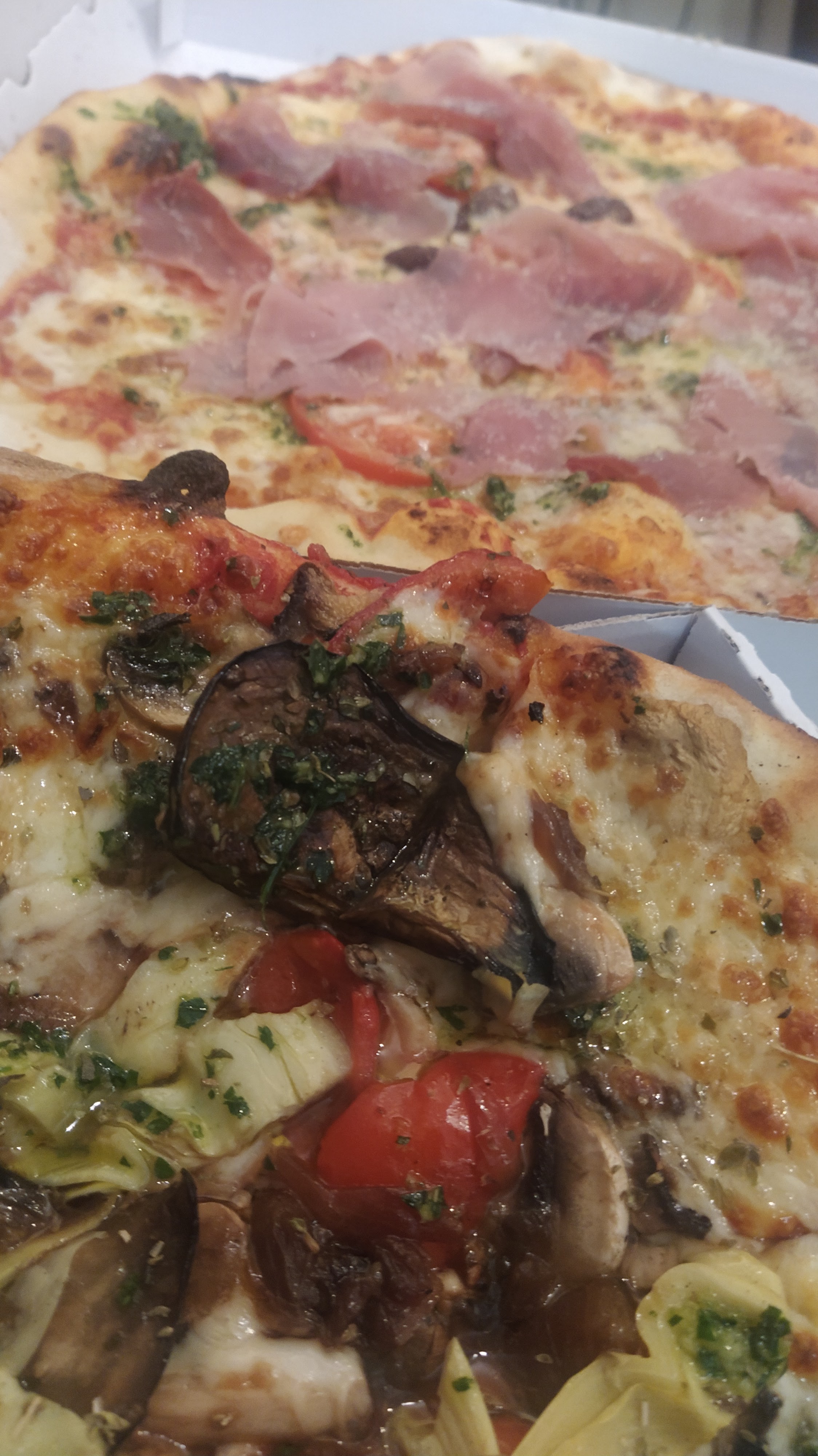 Délicieuses pizzas bien garnies et chaudes.... nous recommandons sans hésiter..livraison au top merci à Santo pour une livraison ultra rapide et très sympa..